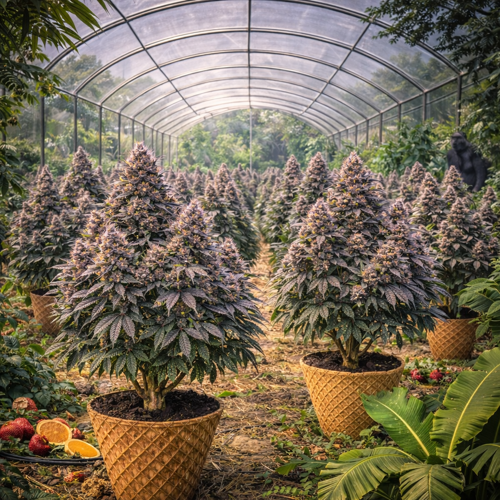 Gorilla Sherbet — потужний фотоперіодний гібрид, який поєднує легендарну силу Gorilla Glue із солодким десертним профілем Sunset Sherbet.